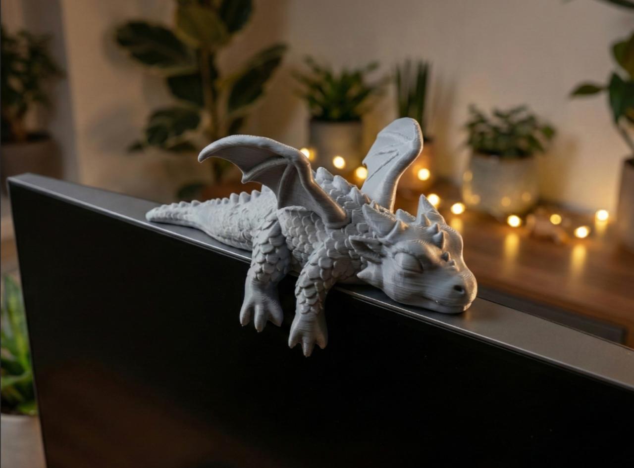 Mitski čuvar za vaš moderni radni prostor. Ova detaljno izrađena skulptura zmaja mirno spava na vrhu vašeg monitora, unoseći dašak magije na vaš radni sto.